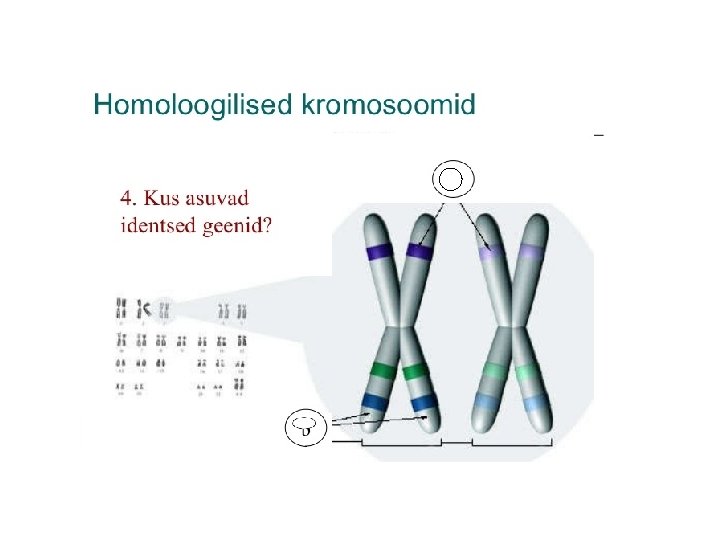 Põhimõisted Alleel – geeni eri vorm (tähistatakse A, a, või B, b jne) Dominantne alleel (A, B)– surub maha retsessiivse alleeli (a, b) toime, kui nad on paarilistes kromosoomides. Homosügoot – vaadeldav tunnus on määratud ühesuguste alleelidega (AA, aa) Heterosügoot – vaadeldav tunnus on määratud erinevate alleelidega (Aa, Bb). Monohübriidne ristamine – ristatakse ühe tunnuse poolest erinevaid isendeid. Dihübriidne ristamine – ristatakse kahe tunnuse poolest erinevaid isendeid. Genotüüp? Fenotüüp?