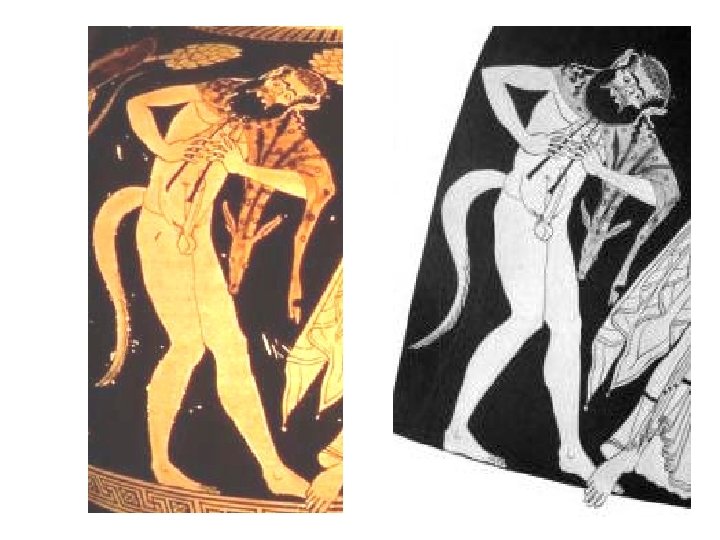 Subject: Body • The silens are nude except for fawn skins and ivy wreaths; they have horse ears and tails, beards and snub noses, and are ithyphallic.