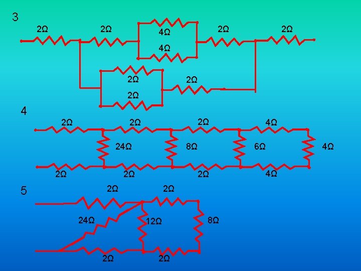 Contoh • Tentukan hambatan pengganti pada rangkaian di bawah 1 Rs = R 1+R 2+R 3+R 4+R 5+R 6+R 7 2Ω 4Ω 3Ω 2 Ω Rs =2+4+3+2+4+5+3 3Ω 4Ω 5Ω Rs =23 Ω 2 6Ω 4Ω 4Ω 3Ω RP: 2 Ω 3Ω 3Ω 1 1 = + RP R 1 1 = 1 + RP 6 1 1 = + RP 6 3 1 = RP 6 RP = 2 Ω 1 R 2 1 3 2 6 Rs = R 1+RP+R 2 Rs = 4+2+3 Rs = 9 Ω