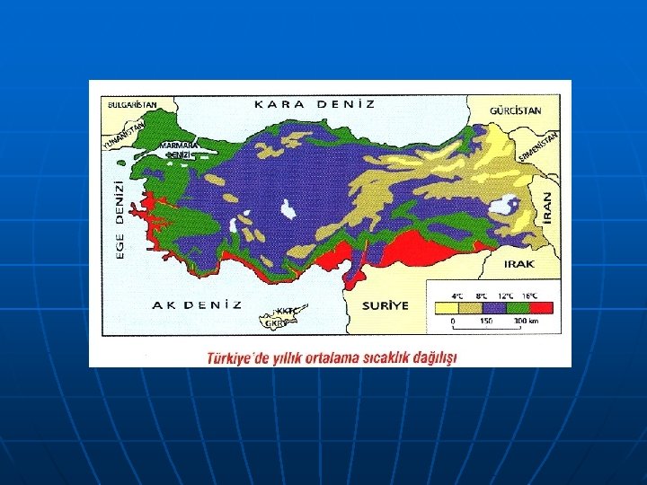 DÜNYA ORTALAMA İZOTERM HARİTASI: 1) K. Y: K G: Y: K’den 2ºC daha sıcaktır. (Karalar fazladır) 2) Dünyanın en sıcak yerleri yengeç dönencesi civarlarıdır. (Nem azlığı) 3) Kıtaların doğu kıyıları batı kıyılarına oranla daha soğuktur. (Akıntılar) 4) Yeryüzünün sıcaklık ortalaması 14. 4ºC’dir. 5) Karasallık eğrilerin büyük oranda sapmasına neden olur. 6) Her meridyenin en sıcak noktalarını birleştiren teorik çizgiye termik ekvator denir. K. Y: K’de termik ekvator karaların ve akıntıların etkisiyle sapmalara uğrar.