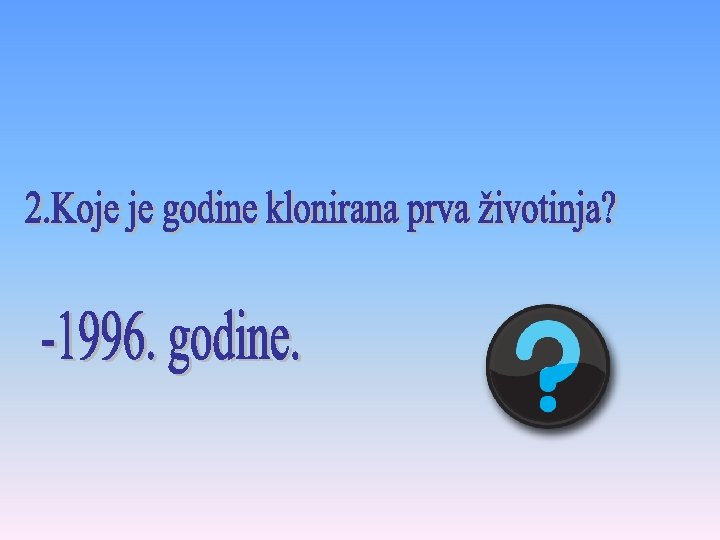 Zanimljivosti ( postupak kloniranja) • Znanstvenici najprije iz ženke uzmu neoplođenu jajnu stanicu i iz nje odstrane jezgru, koja sadrži DNK. Iz tijela životinje koju će klonirati uzmu odgovarajuću stanicu, primjerice stanicu kože, čija jezgra sadrži sve genetske informacije o svom vlasniku. Tu stanicu (ili samo njenu jezgru) znanstvenici tada unesu u jajnu stanicu iz koje su odstranili jezgru i kroz nju puste struju. Tim se postupkom postiže sjedinjenje stanice i citoplazme jajne stanice. Nakon što dobije novu jezgru, jajna stanica počinje se dijeliti kao da je oplođena, čime počinje razvoj klona životinje iz koje je uzeta tjelesna stanica.