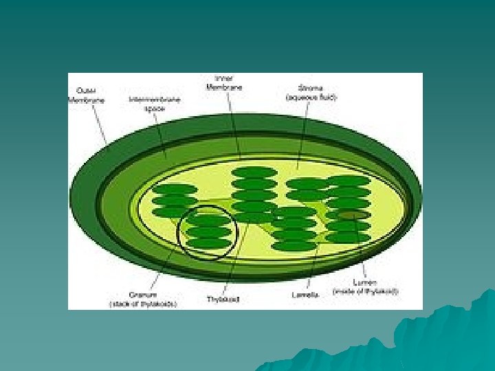 EGITURA Irudian ikusten den bezala, kloroplastoek bi mintz dituzte: barrukoa (iragazkorra) eta kanpokoa (oso iragazkorra)