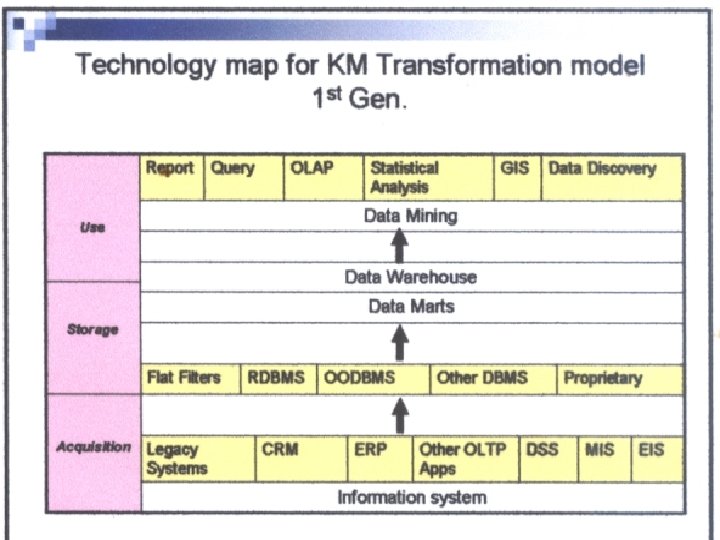 KM technologies for global organization Flow of knowledge : Identify, Validate, Codify, Store, Retrieve and Share n n n Portals BI / Data warehousing Document management Intelligent agents Search engines n n n Knowledge resource n directories / Corporate Yellow n Pages CRM / Contact n management n Massaging / E-mail Groupware or P O collaboration N o technologies P t ols n CO to Remainders / Web Calendars Decision support systems Workflow and tracking Web casting E-learning / Web based training / multimedia based training / CBT Content management