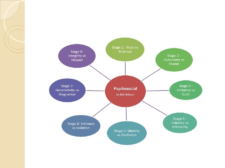 1. 2 Psychosocial Development: Erikson Psychosocial Stages of Personality Development � Divided the growth of the personality into EIGHT psychosocial stages. � Eight successive stages encompassing the life span and at each stage, we must cope with crisis in either an adaptive or a maladaptive way. � Human development is governed by a sequence of stages that depend on genetic or hereditary factors. � Each of the eight psychosocial stages provides an opportunity to develop our basic strengths.