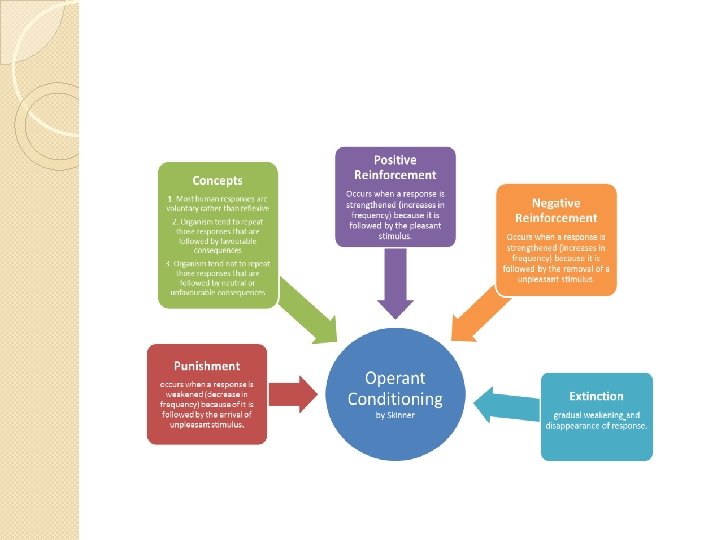 2. 2 Skinner’s Operant Conditioning: B. F. Skinner Concept � Stimulus Response � Most human responses are voluntary rather than reflexive � Organism tend to repeat those responses that are followed by favourable consequences � Organism tend not to repeat those responses that are followed by neutral or unfavourable consequences ◦ According to Skinner’s scheme; favourable, neutral and unfavourable involve reinforcement, extinction and punishment.