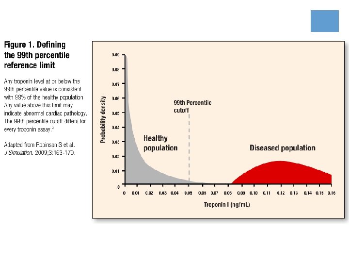 ESRD and Troponin ¡Reduced renal clearance is probably not the primary mechanism of persistently elevated troponin levels in patients with CKD, although this issue is controversial (5). ¡A change in troponin level greater than 20% within 9 hours (with 1 value exceeding the 99 th percentile) is recommended for AMI diagnosis among patients with ESRD and suspected ACS (6).