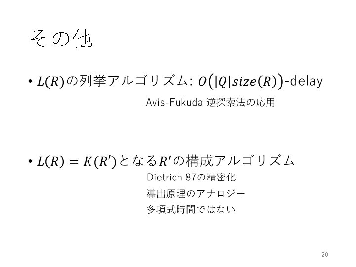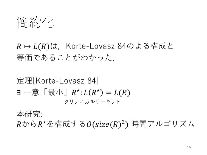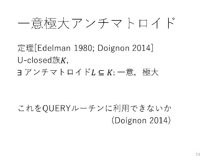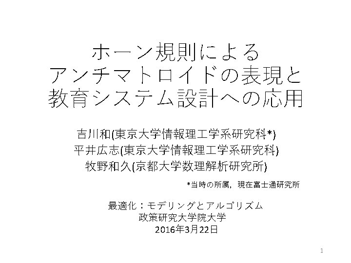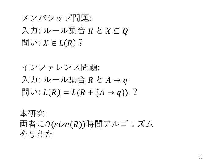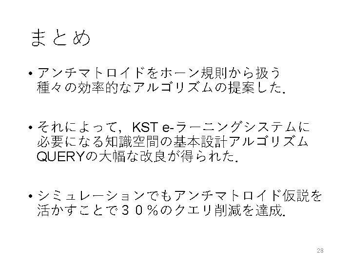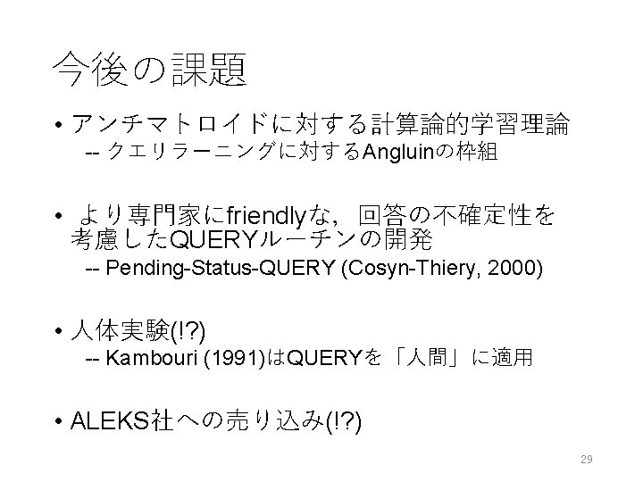 未解決問題 • ご清聴ありがとうございました. H. Yoshikawa, H. Hirai, and K. Makino: A representation of antimatroids by Horn rules and its application to educational systems, 2015, revised in Jan 2016. http: //arxiv. org/abs/1508. 05465 30