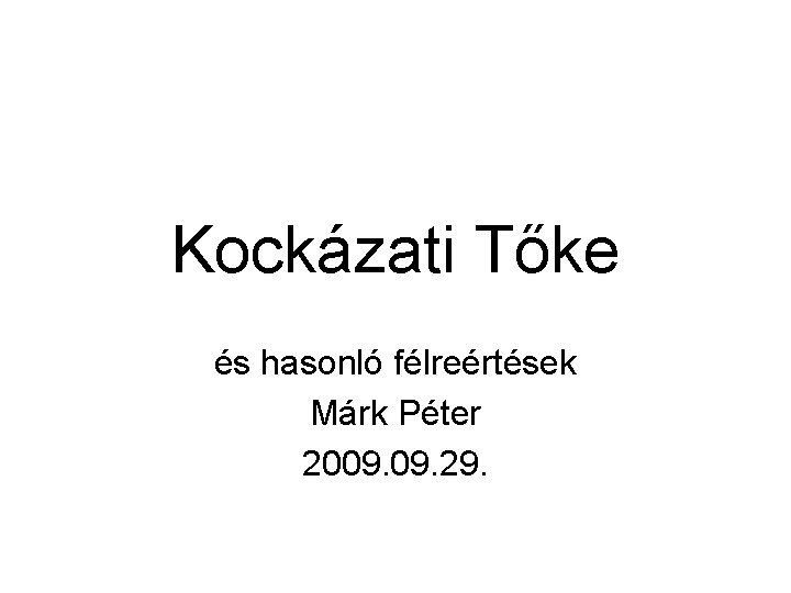 Kockázati Tőke és hasonló félreértések Márk Péter 2009. 29.