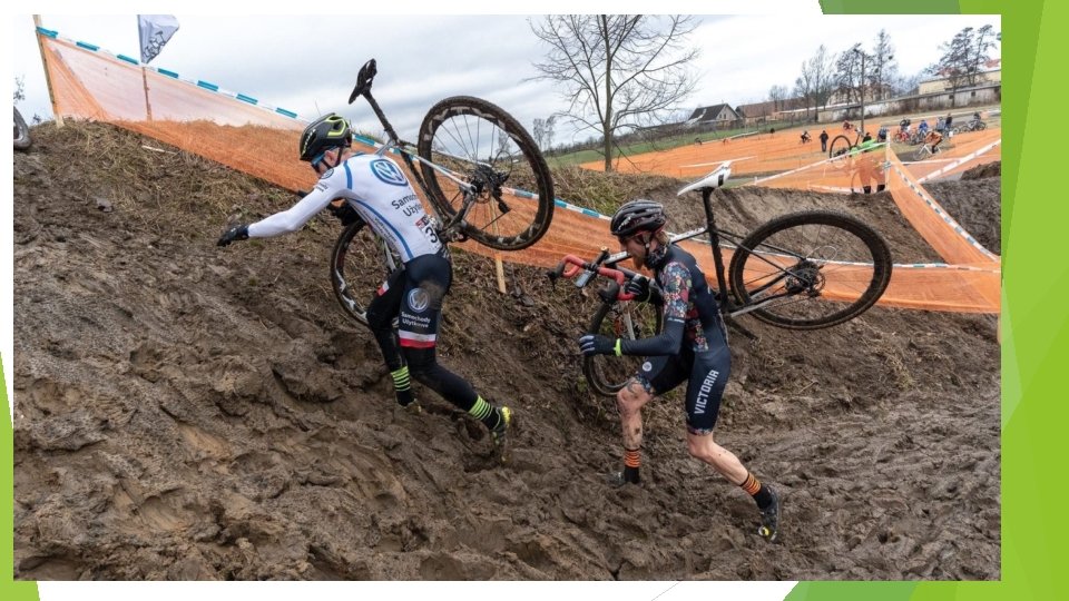 KOLARSTWO PRZEŁAJOWE TA DYSCYPLINA PRZYPOMINA KOLARSTWO GÓRSKIE, ODBYWA SIĘ W TRUDNYM TERENIE (LASY, ŁĄKI, POLA), KTÓRY CZĘSTO ZMUSZA ZAWODNIKÓW DO ZEJŚCIA Z ROWERU I PRZENIESIENIA GO PRZEZ PRZESZKODY (NP. BŁOTO).