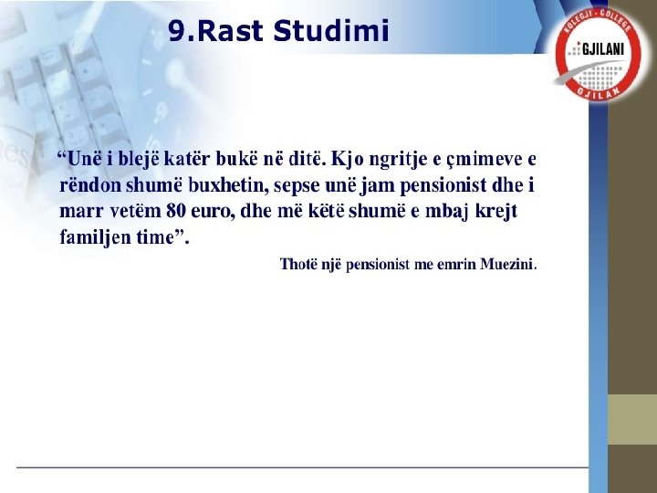 Rast Studimi Elasticiteti i kërkesës Hulumtimi për këtë temë është bërë në “INTEREX” në Gjilan, ku për të qenë sa më të sakët dhe të përafërt në llogaritjen e elasticitetit të çmimit të kërkesës për këtë produkt ne kemi marrur 2 muaj të vitit 2013 respektivisht muajin janar që ishte çmimi 0. 40 cent dhe shkurt 0. 50 cent, keta dy muaj i kemi krahasuar me muajt janar dhe shkurt të vitit 2012 me çmim 0. 30 cent, ku nga të dhënat e marruara kemi: Viti Muaji Sasia Çmimi Bukë 2012 Janar 4500 0. 30 Bukë 2012 Shkurt 3800 0. 30 Bukë 2013 Janar 4340 0. 40 Bukë 2013 Shkurt 4000 0. 50