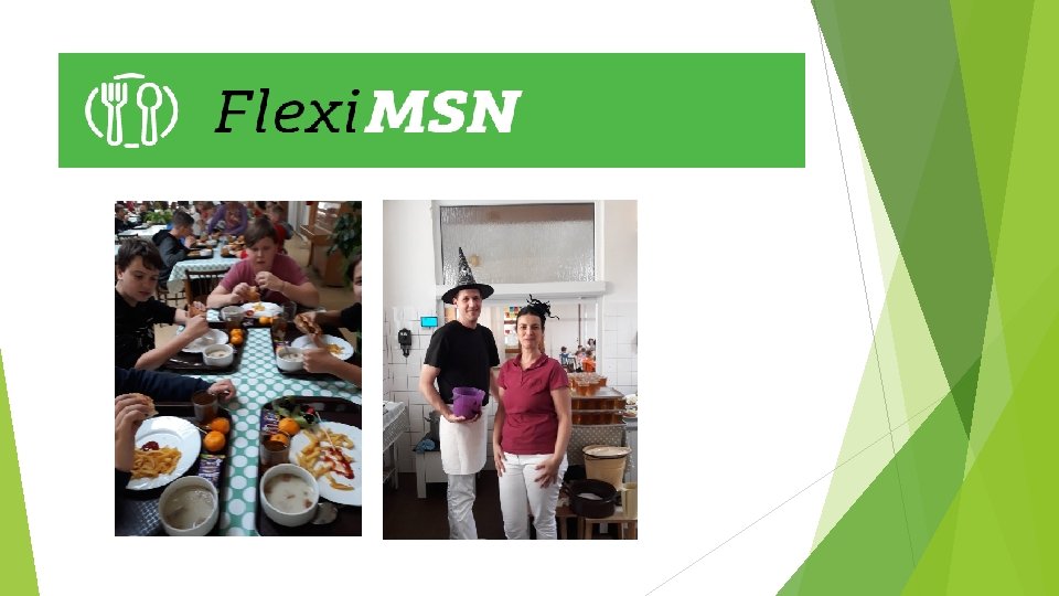 Individuálny prístup k stravovaniu detí Počas overovania sme sa snažili informovať stravníkov o význame zmeny bežných jedálnych lístkov na Flexi jedálne lístky. Ponúkali im nové jedlá a motivovali sme deti ku konzumácií zeleninových jedál a jedál zo strukovinovej zmesi. Zabezpečovanie diétneho stravovania Prijíma sa len donáška diétneho jedla v počte 1