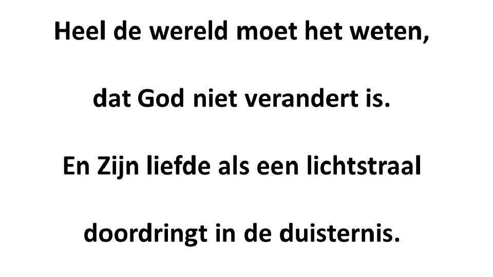 2. Heer, ik wil komen in Uw nabijheid, uit de schaduwen in Uw heerlijkheid. Door het bloed mag ik U toebehoren, leer mij toets mij. Uw stem wil ik horen. Schijn in mij, schijn door mij. 3. Staan wij oog in oog met U, Heer, daalt Uw stralende licht op ons neer. Zichtbaar tastbaar word U in ons leven. U volmaakt wie volkomen zich geven. Schijn in mij, schijn door mij. In het Engels: Mirrored here, may our lives tell Your story. Shine on me, shine on me.