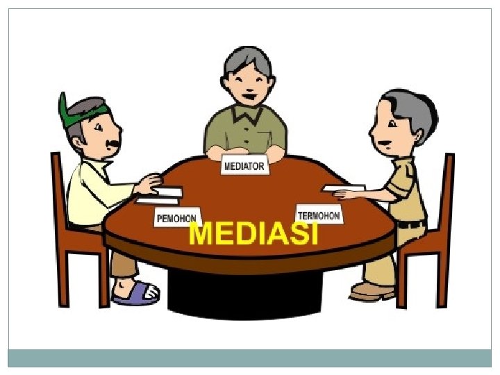 Sidang Ajudikasi 1 2 8 3 Ketua Majelis memberi kesempatan para pihak untuk menempuh proses Mediasi Para Pihak Menolak Mediasi 6 Para Pihak Menempuh Mediasi Jika dalam proses Ajudikasi/Mediasi Pemohon mencabut Menarik Sengketa, Majelis Komisioner mengeluarkan penetapan mencoret Permohonan dari Register Sengketa 4 Mediasi Gagal Mediasi Sepakat 5 SIDANG AJUDIKASI DG AGENDA PUTUSAN 7 SIDANG AJUDIKASI LANJUTAN