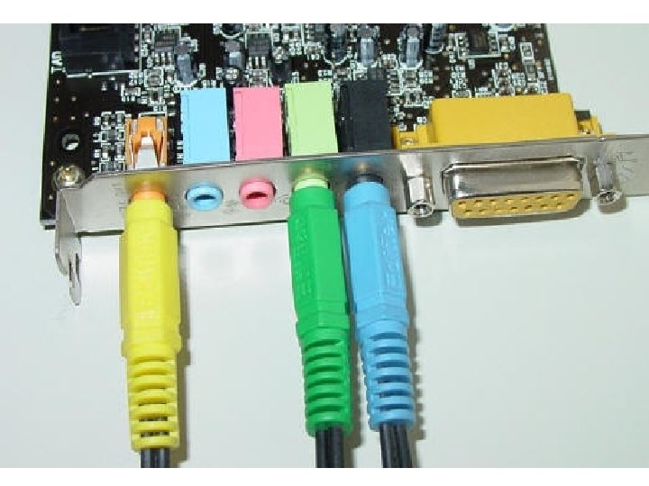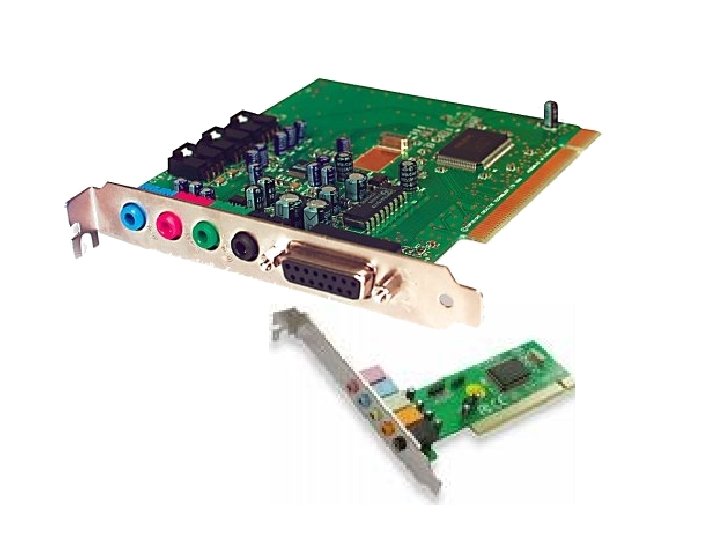 Zvučna kartica • Slično grafičkoj kartici, zvučna kartica ima zadatak da zvuk uskladišten u računaru u digitalnom obliku pretvori u analogni oblik, tako da se može da reprodukovati u zvučnicima. • Ona omogućava i reprodukciju audio CD diskova sa računara. S obzirom na to da se danas gotovo svi računari isporučuju sa CD uređajem i zvučnom karticom, sve češće se integriše s osnovnom pločom.