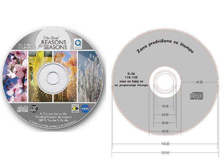 Kompakt-diskovi (CD ROM diskovi) • Kod ovih diskova se primenom laserske tehnologije nanose zapisi na metalnu površinu. • U CD uređaju se, opet primenom laserskog zraka, detektuju neravnine na površini i očitavaju zapisani podaci. Kapacitet kompakt-diska je 640700 MB. • DVD diskovi su zasnovani na istoj tehnologiji kao CD, jedino im je kapacitet znatno veći, od 4, 7 GB do 8, 5 GB. Pored ROM diskova postoje i CD/DVD diskovi koji se mogu korisititi kako za čitanje tako i za pisanje, na isti način kao diskete.