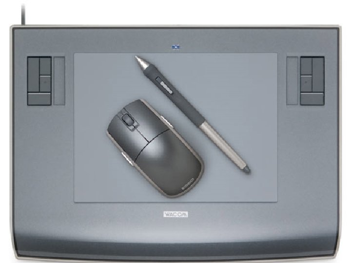 Digitajzeri i grafički tableti • Digitajzeri i grafički tableti su u suštini isti uređaji, razlika je jedino u veličini. Koriste se za unošenje podataka (koordinata) sa crteža. • Pored toga, mogu da se koriste i za zadavanje komandi u nekim programima pokazivanjem na komande iz menija koji se postavi na grafički tablet.
