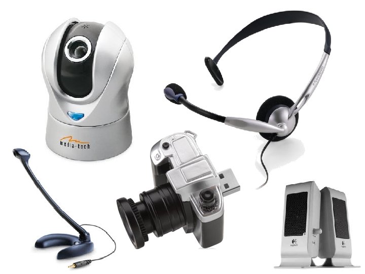 Multimedijalni uređaji • S obzirom na to da je računar univerzalna mašina koja, između ostalog, može da radi i sa zvukom i slikom koji se uskladištavaju u njega u digitalnom obliku, na njega mogu da se priključe i uređaji koji omogućavaju snimanje i reprodukciju zvuka i slike (mikrofon, slušalice, zvučnici, digitalni fotoaparati, digitalne video-kamere itd. ).