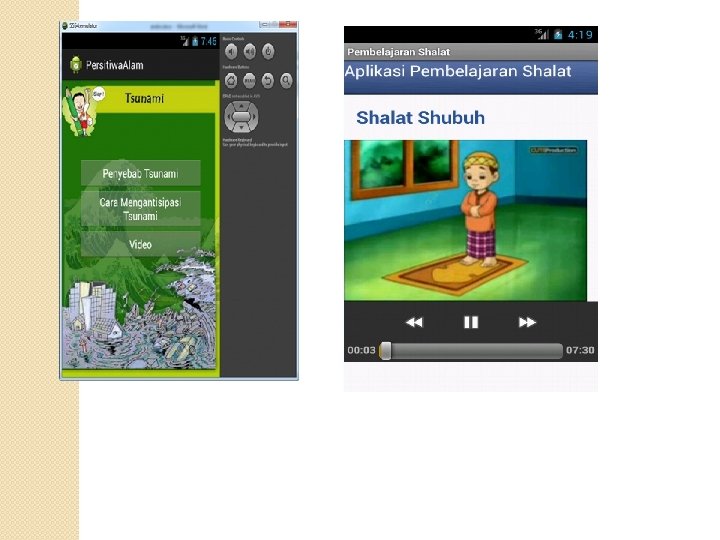 Aplikasi Pengajaran 1. CAI (Computer Assisted Instruction) Jenis Aplikasi CAI : Ø Latih dan Praktek (Drill and Practice) Menguji tingkat pengetahuan siswa. Ø Penjelasan (tutorial) Untuk materi ajaran baru, siswa dapat berinteraksi dengan komputer. Ø Simulasi Digunakan untuk mengkaji permasalahan yang rumit. Ø Pemainan (game) Agar bisa mendapat pengetahuan dengan santai.