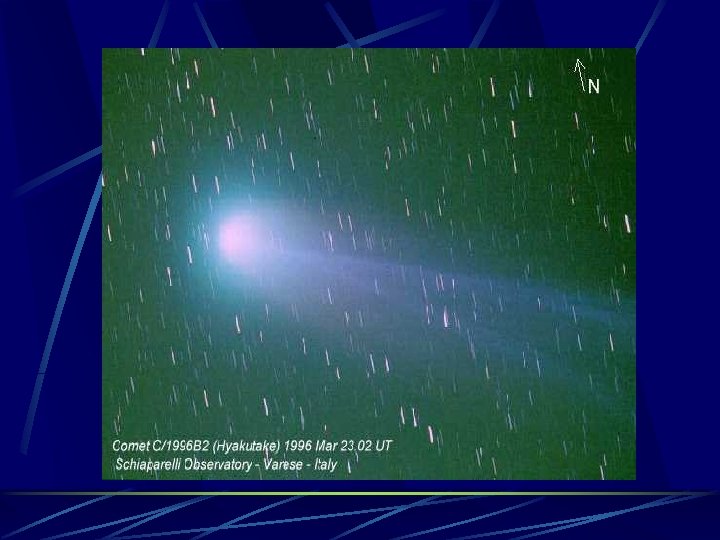 Hyakutake Objaviteľom kométy je Japonec Jodži Hyakutake. V dobe objavu mala 11. mag. Kométa sa pohybuje proti pohybu planét a jej dráha má vysoký sklon voči ekliptike. Prieslním prešla 1. mája 1996, keď bola od Slnka vzdialená 35 miliónov km. K Zemi bola najbližšie 25. marca 1996 (15 mil. km). Jej priblíženie k Zemi zmenilo jej dráhu zo 7700 let na 14 300 rokov. Jej chvost znamenal nový rekord - 100°. Jej najväčším prekvapením pre astronómov bol objav mäkkého röntgenového žiarenia družicou ROSAT 27. Žiariaca oblasť mala tvar kosaka, ktorý bol posunutý o 30 000 km od jadra smerom ku Slnku. To bolo neskôr zistené i u iných komét vrátane kométy Hale-Bopp. Presný mechanizmus vzniku nevieme, ale je to pravdepodobne spôsobené slnečným vetrom pôsobiacim na plyny v kóme za teploty okolo 0°C. Bola to kométa, ktorá mohla na niekoľko dní ukázať ľuďom, ako taká poriadna kométa vyzerá. Bola najjasnejšia na jar 1997 a preto si vyslúžila prezývku "Kométa jari".