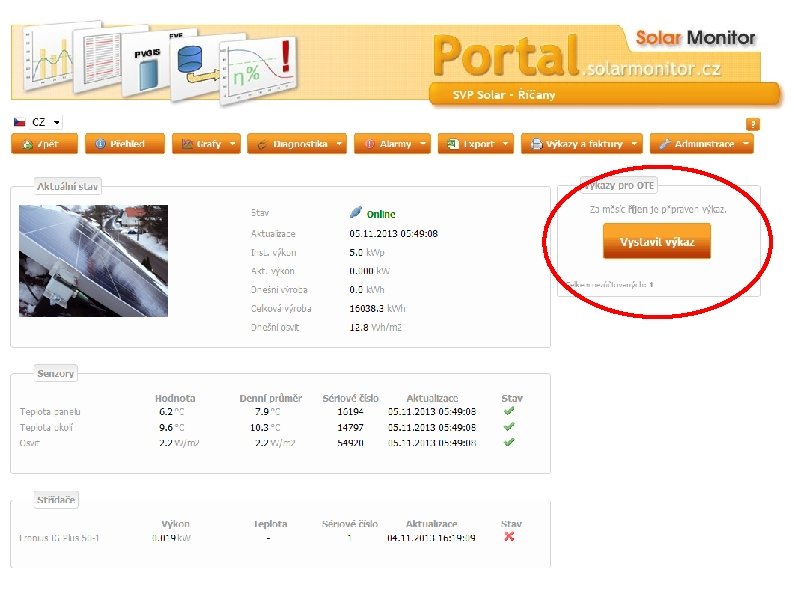 Přímé propojení FVE s CS OTE portal. solarmonitor. cz