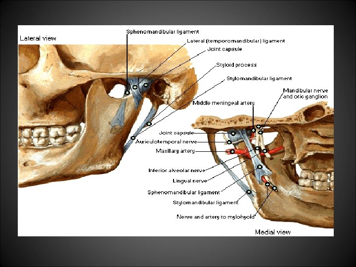 Yardımcı Bağlar • Sfenomandibular bağ – Ciddi bir sınırlayıcı etkisi yok • Stilomandibular bağ – Mandibulanın aşırı protruziv hareketini kısıtlar