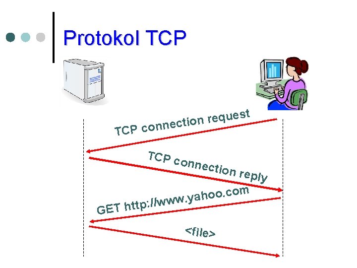 Protokol TCP st que e r n o i t ec n n o c P TC TCP c onnec t GET ion re ply. com o o h a y. w w w / / : p t t h <file>