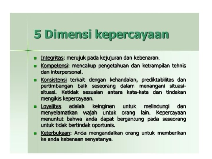 PRINSIP – HINDARI PEMIMPIN “ A I D S “ ( Aku – Iri - Dengki – Sirik ) • Apakah saya bisa menerima kritikan ? • Apakah saya terlalu suka mencela orang lain ? • Jika terjadi ketidakberesan, apakah saya menyalahkan semua orang kecuali saya ? • Apakah saya berprasangka buruk ? JIKA YA > 2 … ANDA BESAR KEPALA Bagaimana untuk mengurangi kepala yang kebesaran : Mintalah teman akrab anda untuk menyebut 4 hal yang tidak baik tentang anda !