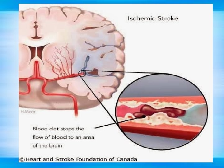 Etiologi 1. Trombosis cerebral Atherosklerosis/arterioskerosis Hypercoagulasi pada polysitemia 2. Emboli 3. Hypoksia Umum 4. Hypoksia setempat