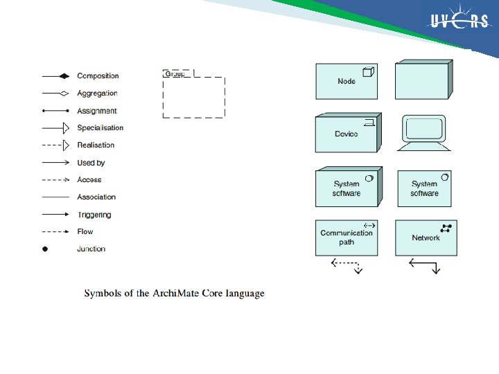 Simbol dalam Archi. Mate core language dapat dilihat pada slide setelah ini CATATAN! Perhatikan bahwa beberapa konsep dapat dinotasikan baik melalui gambar ‘box’ dengan icon, atau melalui icon itu sendiri