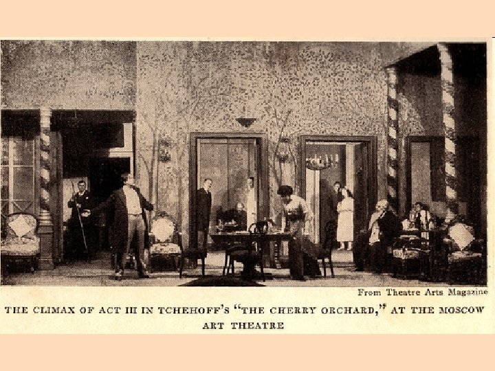 • Russian Theatre disorganised with melodramatic acting • Influences Mikhail Schepkin(Maly Theatre) Sax Meiningen Company(Ensemble) • Playwrights Gogol and Chekhov • Partnership with Nemirovich-Danchenko to form Moscow Arts Theatre-Permanent company
