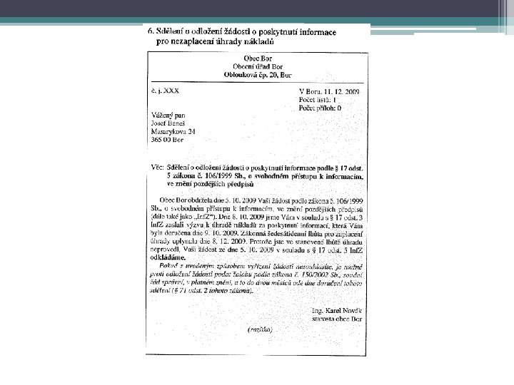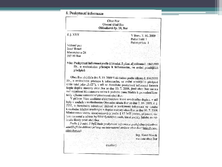 Poskytnutí informace zveřejněním • do 15 -ti dnů zveřejnit informaci poskytnutou na žádost