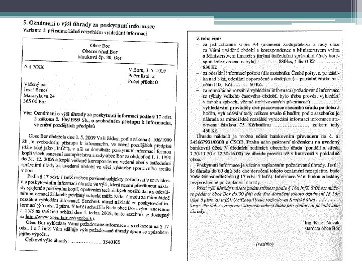 Právo nahlížet do dokumentů obce a jejích orgánů • Nahlížet lze do Ørozpočtu obce, Ødo závěrečného účtu obce za uplynulý kalendářní rok, Ødo usnesení a zápisů z jednání zastupitelstva obce, Ødo usnesení rady obce, výborů zastupitelstva obce a komisí rady obce a pořizovat si z nich výpisy; Ønahlédnutí musí být umožněno bezplatně a bez omezení rozsahu.