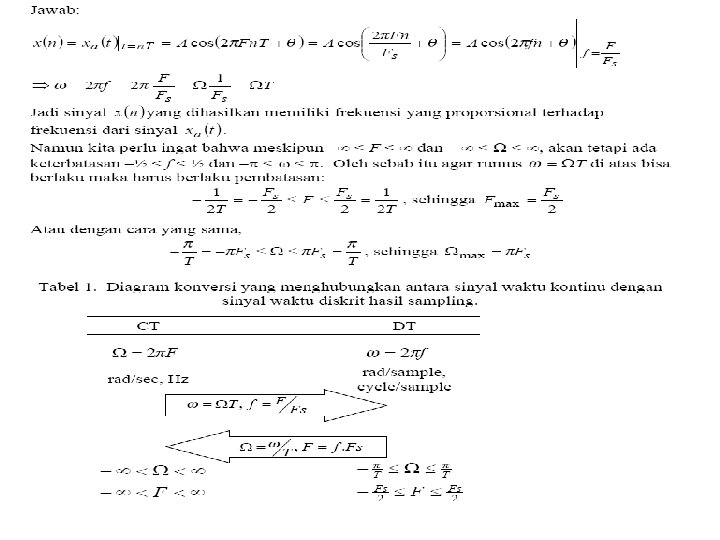 Hubungan antara frekuensi waktu kontinu dengan frekuensi waktu diskrit dari sinyal yang terhubung oleh proses sampling
