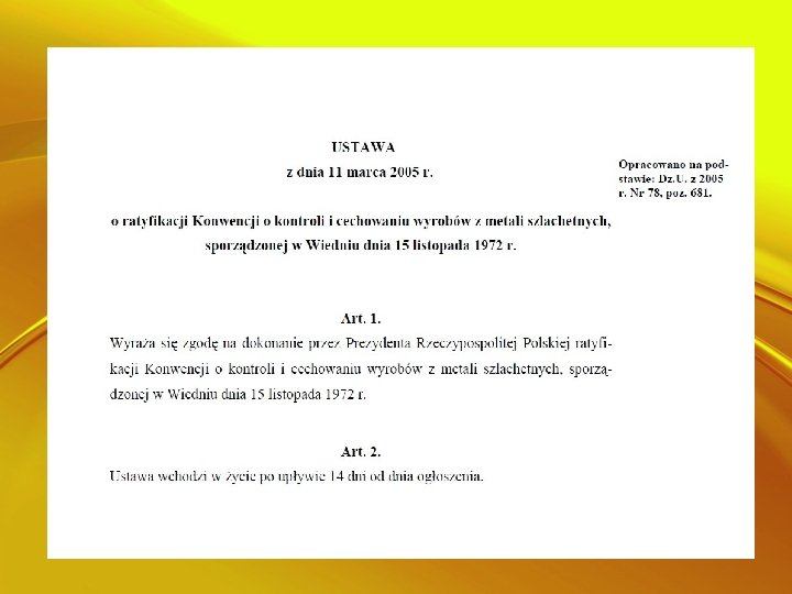 Problem ten został rozwiązany w momencie przystąpienia Polski do Konwencji o kontroli i cechowaniu wyrobów z metali szlachetnych.