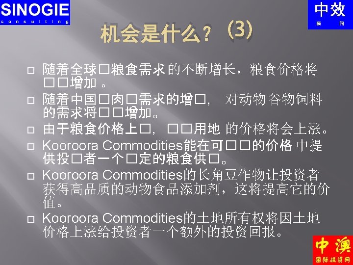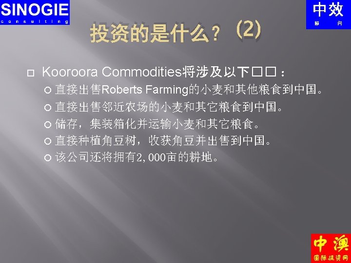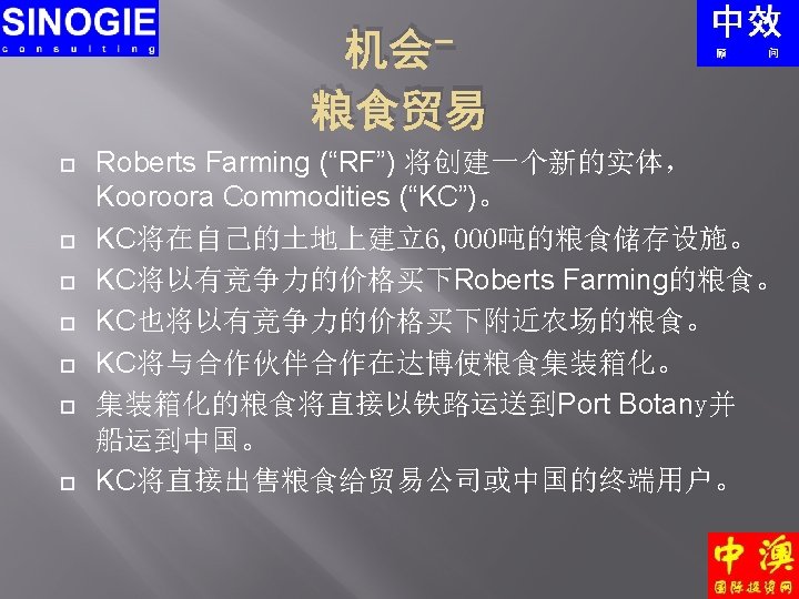 KOOROORA COMMODITIES GRAIN FARMING AND GRAIN TRADING PROJECT. Pre-NDA presentation (English) Prepared by Sinogie Consulting Group