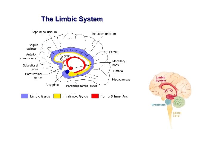 • LIMBICKÝ PŘEDNÍ MOZEK • Limbický přední mozek představuje mechanizmus, který řídí chování živočichů v určitých životně důležitých situacích, jako je například ohrožení života, při lovu kořisti a zajištění potravy, rozmnožování a výchova mláďat (umožňuje přežít a zajistit zachování druhu). Reakce organizmu na uvedené situace se projevují jednak určitou emocí (strach, agresivita, vztek, obavy, příjemné pocity, smutek radost a pod. ) jednak reakcemi somatickými (motorickými) a viscerálními (autonomní nervový systém, sekrece hormonů). • Emoce jsou vyvolány původně čichovými informacemi (hlavní zdroj informací limbického systému představovala původně čichová signalizace). U člověka je původní čichová informace potlačena, spouštěcí mechanizmy emocí jsou představovány především psychickými podněty z neokortikálních oblastí mozkových hemisfér • ovlivňuje limbický systém sympatikus a parasympatikus, tj. viscerální reakce organizmu (změny krevního tlaku, zrudnutí, zblednutí, změny frekvence srdeční činnosti, změny kvality dýchání, peristaltiky střev a pod. ). • těmito spoji je řízena somatická (motorická) odpověď organizmu (svalový neklid, třes, stupor).