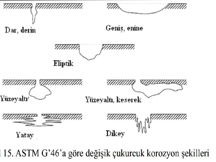 ÇUKURCUK (PİTTİNG) KOROZYONU � Korozyon sonucu bir metal yüzeyinde delikcikler, çukurcuklar oluşursa bu tip korozyona çukurcuk korozyonu (pitting) denir. � Çukurcuk korozyonu gizlice oluşan ve en yıkıcı korozyon türüdür. � Çukurcuk korozyonu, yerel ve şiddetli olması ve çoğu kez bir anda ortaya çıkması nedeniyle en kötü korozyon türüdür.