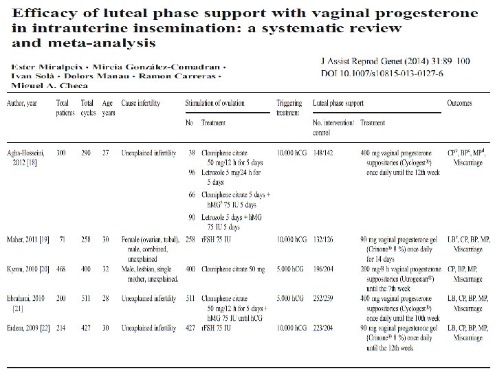 LUTEAL DESTEK h. CG Progesteron Estrojen NSAID Aspirin Sildenafil Heparin Gn. RH