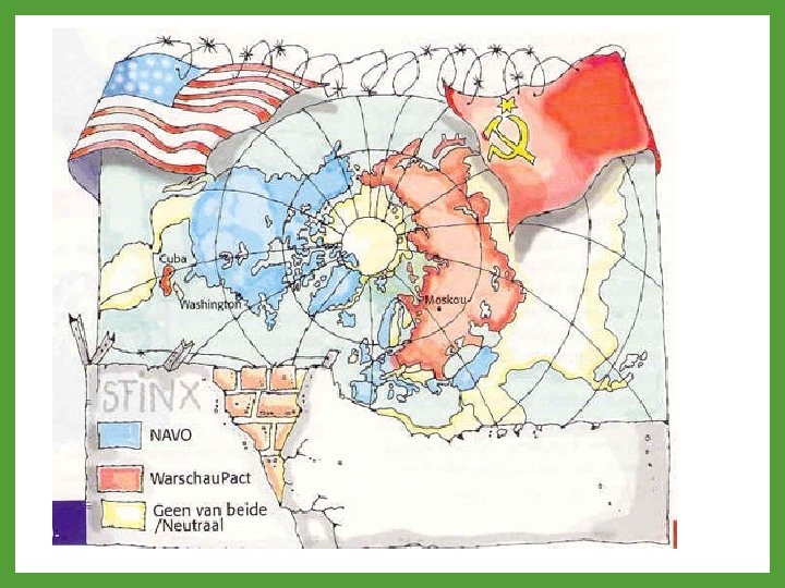 Koude Oorlog Permanente oorlogsdreiging 1945 - 1991 Verenigde Staten USSR “Kapitalistisch Westen” “Communistisch Oosten” Strijd om invloedssferen