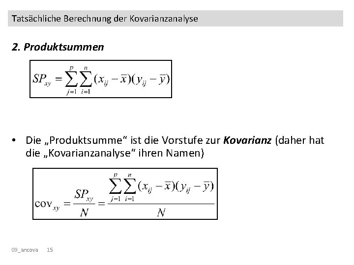 Tatsächliche Berechnung der Kovarianzanalyse 1. Quadratsummen 09_ancova 14
