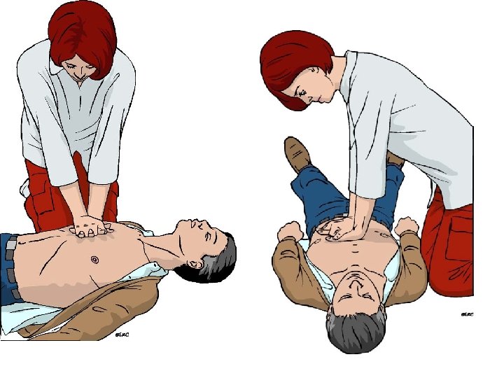 start chest compression as follows: ◦ kneel by the side of the victim; ◦ place the heel of one hand in the centre of the victim’s chest; (which is the lower half of the victim’s breastbone (sternum)); ◦ place the heel of your other hand on top of the first hand; ◦ interlock the fingers of your hands and ensure that pressure is not applied over the victim’s ribs. Keep your arms straight. Do not apply any pressure over the upper abdomen or the bottom end of the sternum. ◦ position yourself vertically above the victim’s chest and press down on the sternum at least 5 cm (but not exceeding 6 cm); ◦ after each compression, release all the pressure on the chest without losing contact between your hands and the sternum; repeat at a rate of at least 100 min− 1 (but not exceeding 120 min− 1); ◦ compression and release should take equal amounts of time.