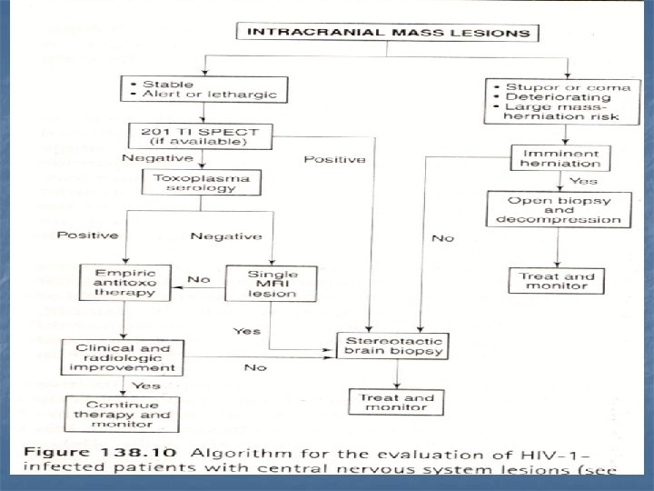 HIV ve Nöroepidemiyoloji n n n % 80 -90 postmortem çalışmalarda SSS tutulumu (+) % 40 - 60 tüm yaşamları boyunca SSS tutulumu bulgusu klinik olarak gözlenmekte % 10 nörolojik semptomlar ile tanı konuyor % 10 intrakranial kitle etkisi yapan lezyon % 3. 3 ilk bulgu kitle etkisi yapan lezyon