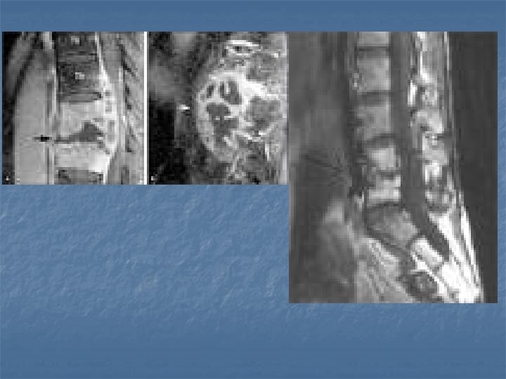 SPİNAL İNFEKSİYONLAR è Medüller abse è Epidural / Subdural ampiyem è Piyojenik spondilit è Kronik granülamatöz infeksiyon è Paraziter infeksiyon