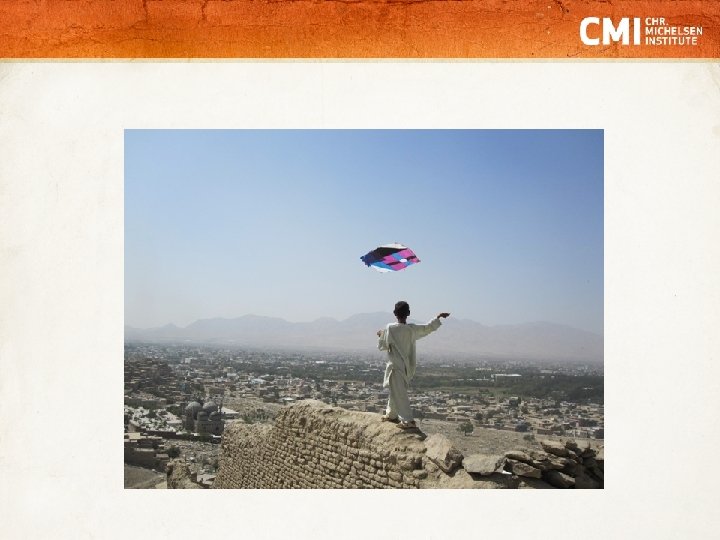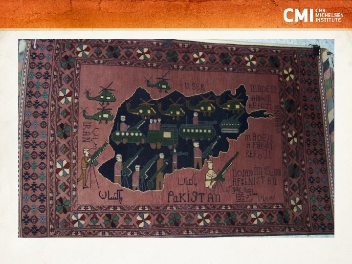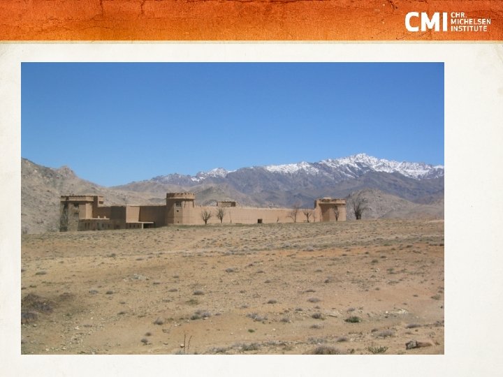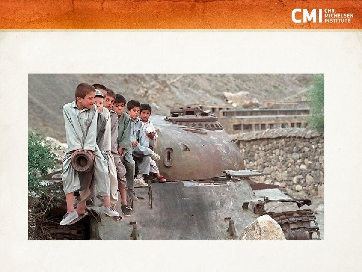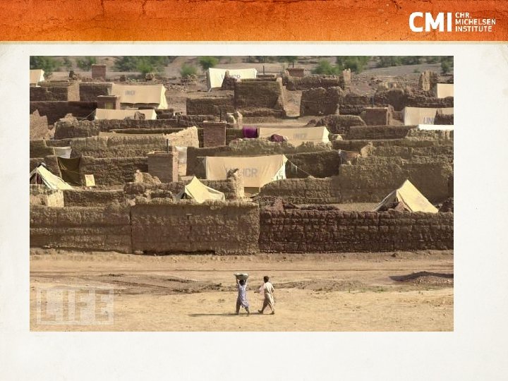Om Afghanistan • Mellom 25 -30 mill innbyggjarar • 80 % sunni muslimar, 20 % shia muslimar – 2 hovedspråk • Eit av verdas fattigaste og mest krigsøydelagte land, levelalder 42 år, ekstremt høg barne/mødredødlegheit • Tradisjonelt jordbrukssamfunn, inntekt for 80% av befolkninga før 1980 • Flykningar: over 5 millionar på 80 talet, >25 % av befolkninga har returnert sidan 2001, framleis 2, 7 mill flyktningar i Pakistan/Iran – 0, 3 mill IDPs – stor regional arbeids- migrasjon - dei fattigaste / mest sårbare returnerar ikkje frivillig MIGRASJON ER AFGHANSK OVERLEVELSESTRATEGI