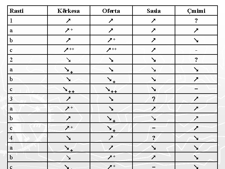 ► Në realitetin ekonomik janë të zakonshme situata më të ndërlikuara se ato të paraqitura më lartë, ku ndryshimet mund të jenë të njëkohshme dhe në drejtime të njëjta apo të kundërta si për kërkesën ashtu edhe për ofertën. ►I analizojmë të gjitha rastet e mundshme të zhvendosjes së njëkohshme të kërkesës dhe ofertës, duke u bazuar në Tabelën 2. 4 dhe në figurën 2. 6. Sqarojmë fillimisht se çka shprehin pozicionet e tabelave 2. 4: