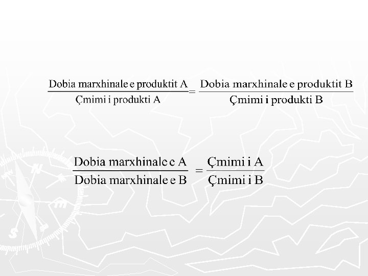 ► Në realitetin e ekonomik konsumatorët ndodhën përballë shumë alternativash dhe zgjedhja racionale kërkon balancimin e përfitimeve shtesë me kostot shtesë të këtyre alternativave të mundshme. ► Supozojmë se konsumatori ka si alternativa dy grupe te produkteve (A) dhe (B), dhe përpjekja e tij është qe te zgjedh një kombinim optimal ndërmjet këtyre dy produkteve A dhe B kur niveli i te ardhurave të konsumatorit është X dhe atij i duhet që këtë shumë ta ndaj midis produkteve A dhe B
