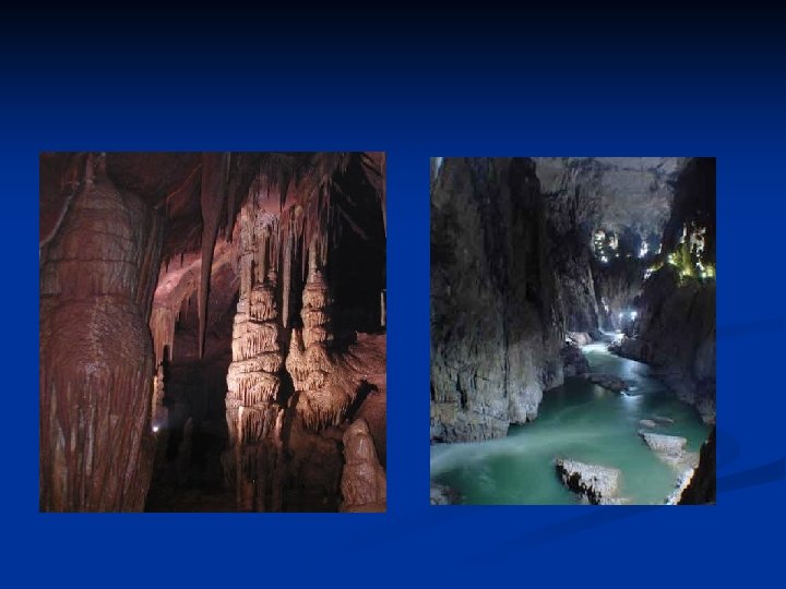 n Spilje - podzemne šupljine koje su razvijene u vodoravnom pravcu (do 45° ), bogate su spiljskim ukrasima ( speleološkim objektima ) - stalaktiti - stalagniti - stupovi ( stalagnati )