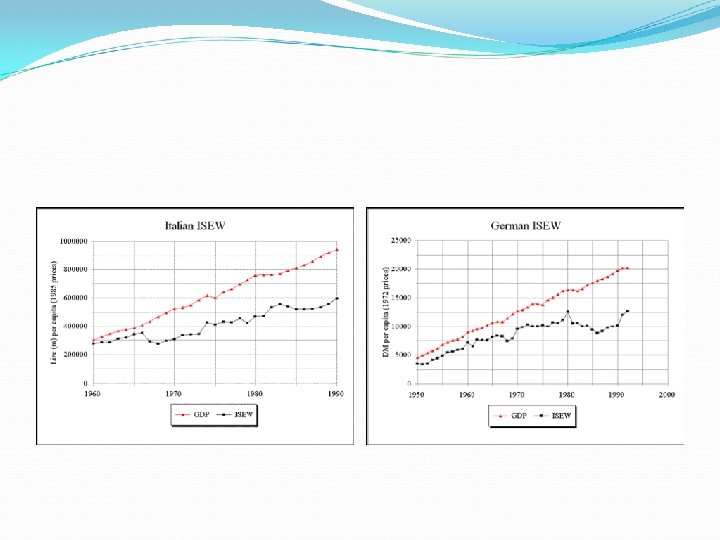 Fenntartható Gazdasági Jólét Mutatója (ISEW) 1989 -ben Caracas : konferencia az alternatív gazdasági mutatókról GDP leváltása: komplex mutatórendszerrel ; gazdasági, környezeti és társadalmi mutatók csoportjaival. GDP, melyek használata mélyen beleágyazódott a mai gazdasági és politikai életbe, nem lehet egy csapásra többmutatós rendszerrel felváltani