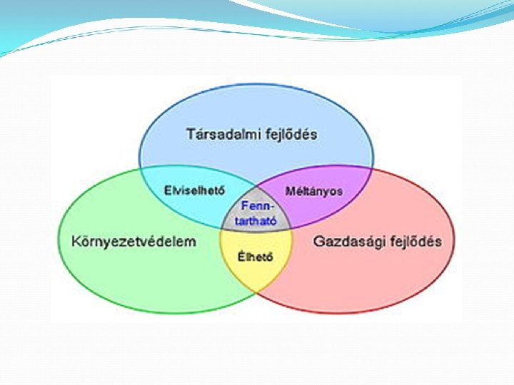 A fenntartható fejlődés értelmezése A fenntartható fejlődés elvei (1987): 1. 2. 3. 4. 5. Figyelem és gondoskodás az életközösségekről Az ember életminőségének javítása A Föld életképességének javítása és diverzitásának megőrzése A nem megújuló erőforrások használatának minimalizálása A Föld eltartó képessége által meghatározott kerteken belül kell maradni