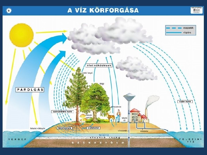 Az elemek körforgása Az élőlények állandó anyag- és energiacserekapcsolatban vannak a környezetükkel. Legfontosabb energiaforrás a napsugárzás, de ezt közvetlenül csak a növények hasznosítják, miközben a szervetlen anyagokból szerveseket állítanak elő. Ezek lebomlásakor visszakerülnek a környezetbe.
